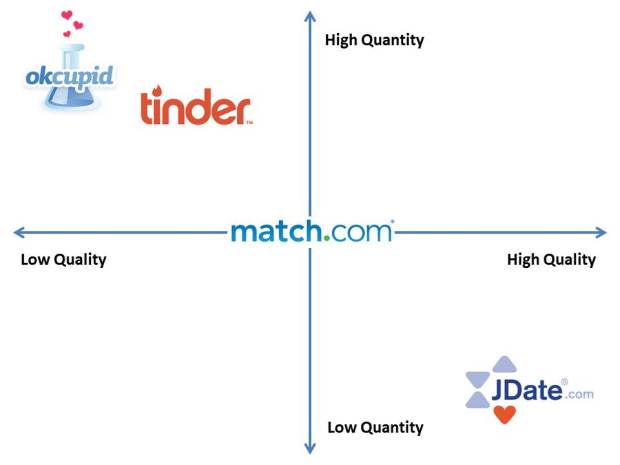 And with that, I’ll transition to the opposite end of the love spectrum. Two weeks ago I wrote the first post in a series dedicated to my experiences in online dating. In case you missed it (but how could you?), in Online: Part I I discussed the reasons behind why I decided to join the delightful world of online dating world five years ago. I also shared the below graph of the online marketplace as I’ve experienced it, which can be summed up in one simple relationship: Quantity vs. Quality.