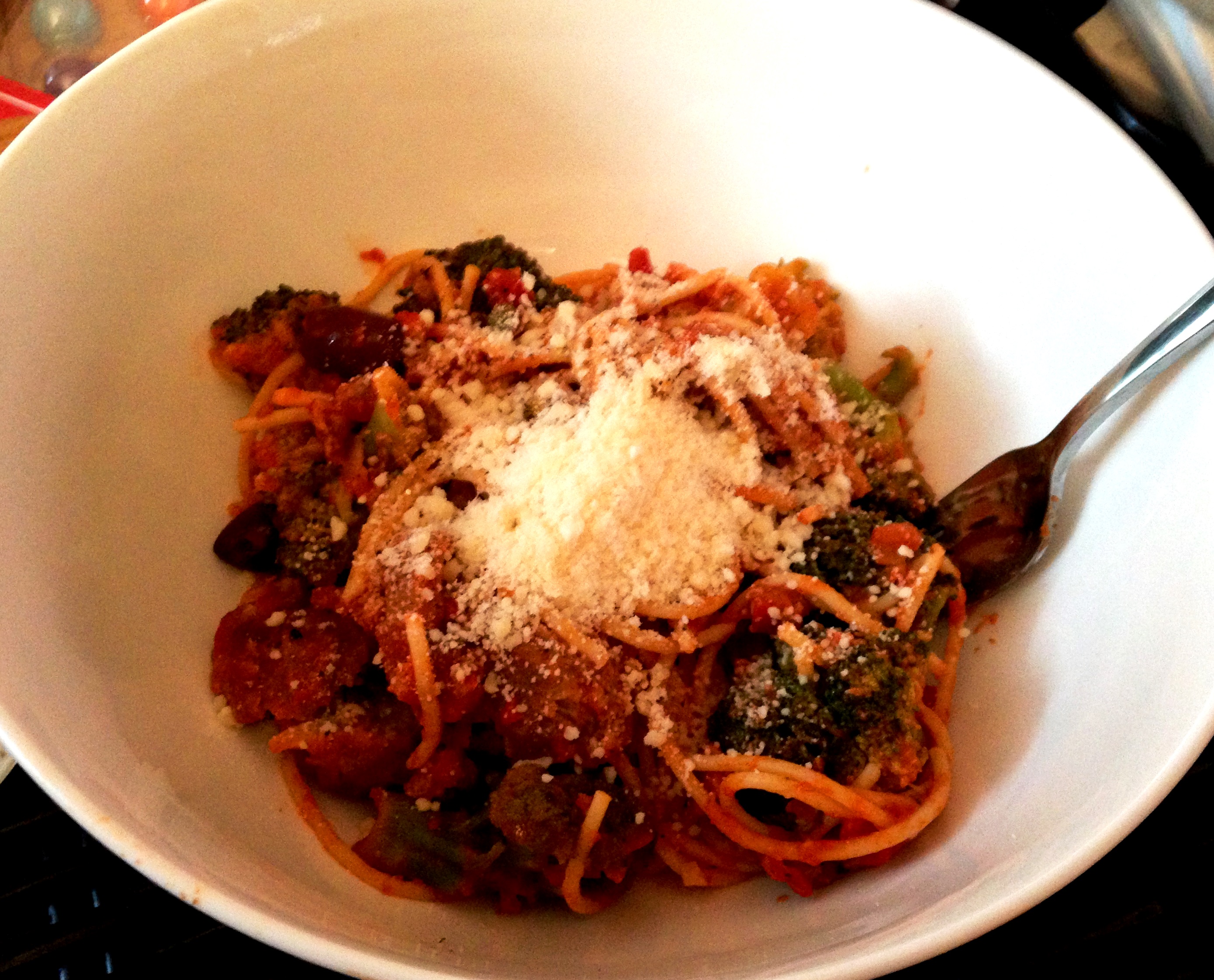 Since the race was Saturday morning, I hurried home from work to prep for the race and make my standard pre-race meal:  pasta!  I went with spaghetti and meatballs.  I made the meatballs from scratch using this recipe / technique – The Kitchn is a great blog for teaching you methods, not specific recipes.  Highly recommend!  I also prepared all of my race stuff using the checklist I made last year from my gear post, which was super helpful – blogging is coming in handy!