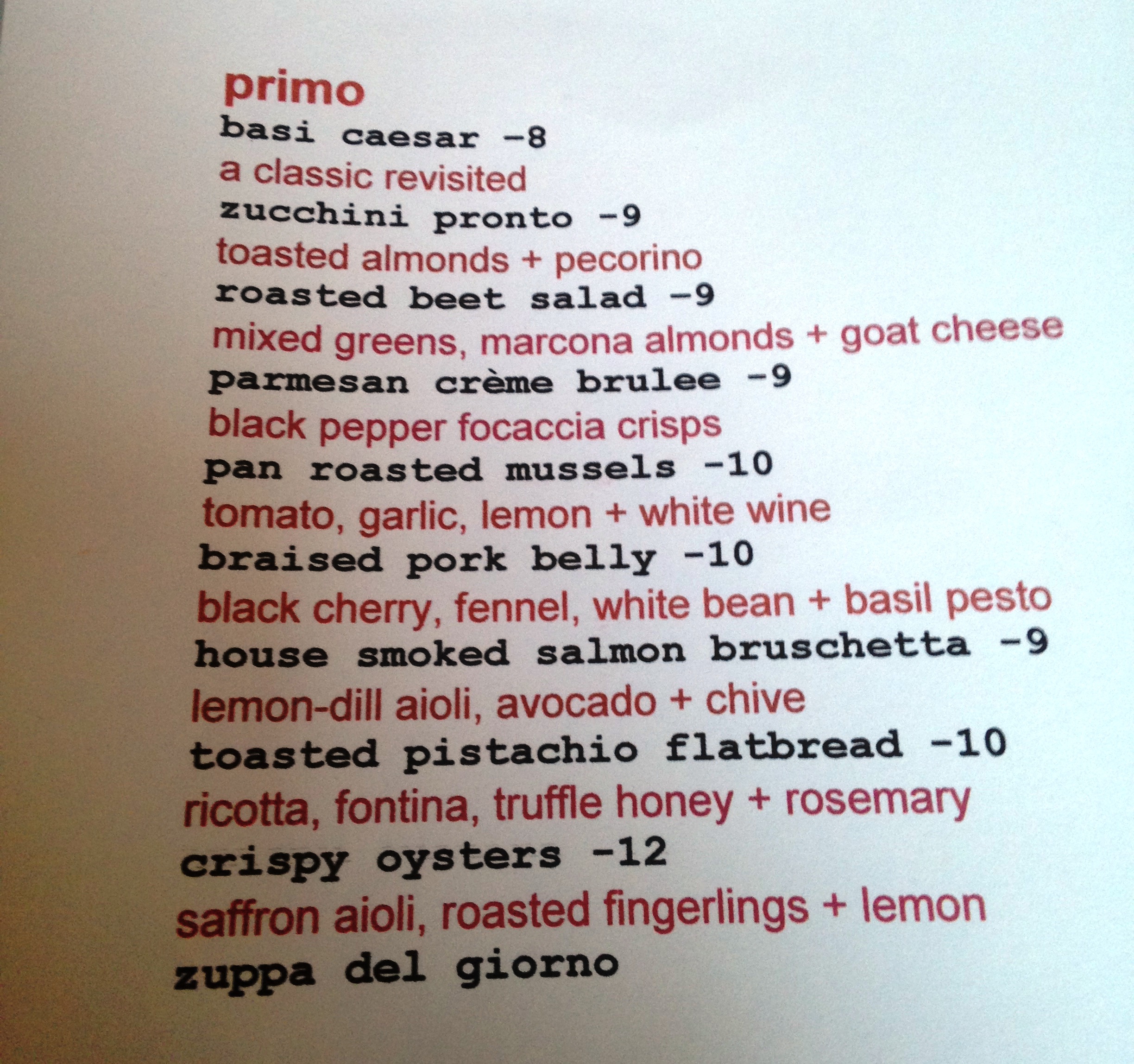We went for the zucchini pronto, mussels, and toasted pistachio flatbread. All were outstanding, but there is just something special about the zucchini – it’s SO GOOD. Light, fresh, flavorful – my mouth is watering just thinking about it. If you’ve never had it – get your butt to Basi ASAP!