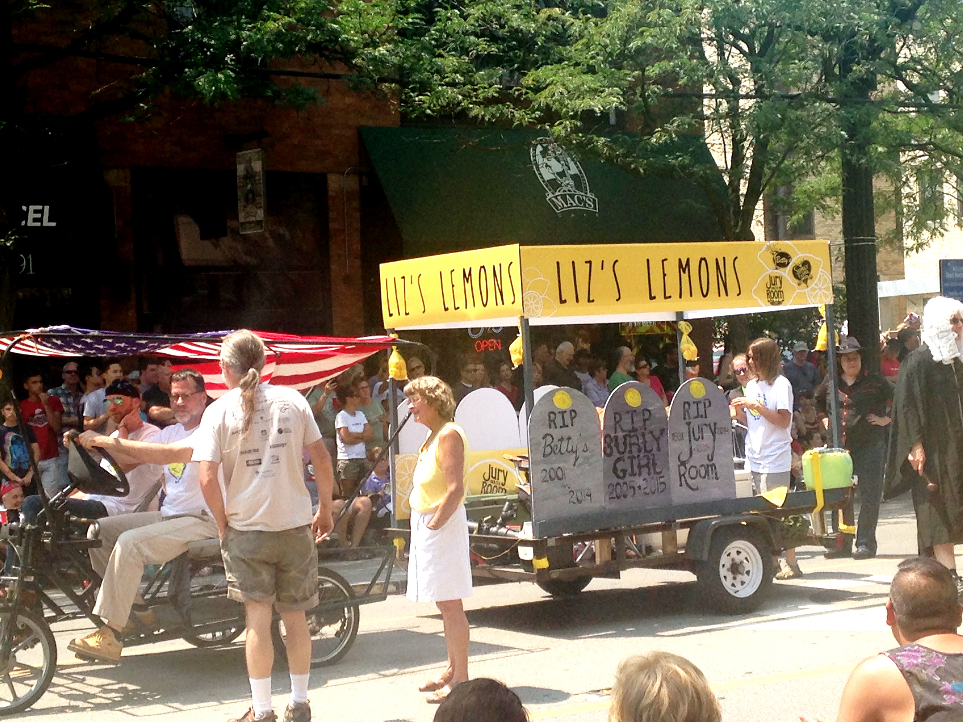 By the time we were finished, it was almost noon! I hurried home to meet up with my Mom and Karen and a couple of Karen’s friends (Hi Terry and Cindy!) for the 32nd Annual Doo Dah Parade! As mentioned earlier, I’m not usually in town Fourth of July weekend, so I hadn’t actually watched the Doo Dah before. But I had definitely heard about it – my parents used to go back in the day, and Karen has been a regular spectator over the years! Sadly, I was a bit disappointed. Despite a plethora of political material in the news currently, there was barely any political satire – I didn’t see a single Donald Trump! It was mostly weird people doing weird things. But the Marching Fidels did make their annual appearance (with an “open for business” sign), as did The Supremes!